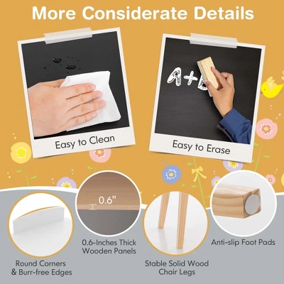 - Reliable & Sturdy Wooden Structure: 0.6-inches thick wooden panels and stable solid wood chair legs keep it strong and sturdy to offer long-term use. Anti-slip foot pads ensure more stability. Plus, this house-shaped table and chair set features anti-toppling device and plastic angle code brackets for additional steadiness.