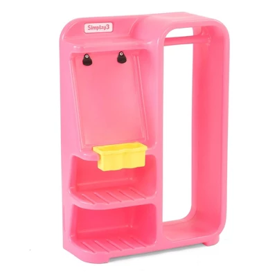 - Features include a storage rack to hang clothing (hangers not included), three shelves for shoes or accessories, a holder for markers and crayons and a stand up easel with two clips to hold your childās fashion designs