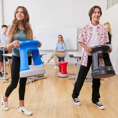 The Storage Stool is a flexible seating option ideal for those who like to wiggle and wobble while they sit. Unlike a standard classroom chair, seats that rock, tilt, and swivel allow freedom of movement and encourage good posture and alertness while learning. Continuous small movements increase blood flow to the body and brain aiding concentration without distracting others nearby. These seats feature a built-in storage space to keep small supplies, reading books, and water bottles within reach. Designed for everyday use in schools, homes or offices, these functional and colorful stools are a fun way to provide extra seating in any learning space. Active seating is ideal for individuals who have restlessness, ADHD, ASD, or sensory sensitivities. The lightweight and adaptable seat is the perfect grab-and-go stool for taking the classroom indoors and out. Quickly and easily rearrange workspaces to create a dynamic collaborative environment between students or use for individual work study. This wobble stool features a latex-free rubberized base that helps keep the seat in place on hard or carpeted surfaces, and a perimeter safety ring that creates a natural stop.