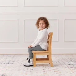 Three-Rung Ladderback Chairs are the perfect seating addition for classrooms, playrooms, or daycares. The ergonomic design encourages little ones to maintain good posture improving circulation and helping maintain focus and productivity. The vented back supports air circulation with built-in handles to easily re-arrange workspaces. Child-sized chairs promote student confidence and independence, and a dedicated workspace for learning encourages children to develop good work habits. Little ones take ownership of their learning as they navigate a kid-sized environment; chairs that are sized just right allow kids to enjoy a book, snack, or seated rest while feeling comfortable and confident in their bodies. The kidsā chairs are constructed from durable rubberwood with a tough UV lacquer that seals the wood surface and resists scratching; chairs feature anti-tip rear legs and rounded corners for added safety. A UV inhibitor makes furniture resistant to ultraviolet light and yellowing. Natural rubberwood is extremely durable and will hold up to everyday use in school, home, or an early childhood environment. Seats feature angled back legs to help reduce tipping and nylon glides to protect floors from scratching and scuffing. Pair with an ECR4Kids Hardwood Kids Table and Birch Classroom Furniture to complete the set; sold separately.