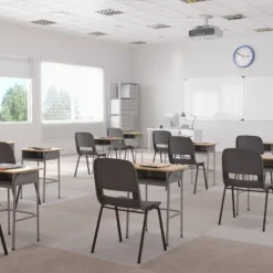 Run a smooth after school program by having plenty of these heavy-duty plastic stack chairs around rambunctious kids who tend to be tough on seating. These classroom chairs are comfortable with an air-vented back and waterfall seat edge to put students at ease while learning. The 16″ seat height is ideal for 3rd – 7th Grade students. These school stack chairs are built to last with a dual braced frame that can hold up to 661 pounds. School maintenance workers can appreciate student chairs that can stack for floor upkeep, these student desk chairs stack up to 15 chairs high. We consider this set of 5 student stack chairs to be the premier stack chair – essential for every school and classroom setting.