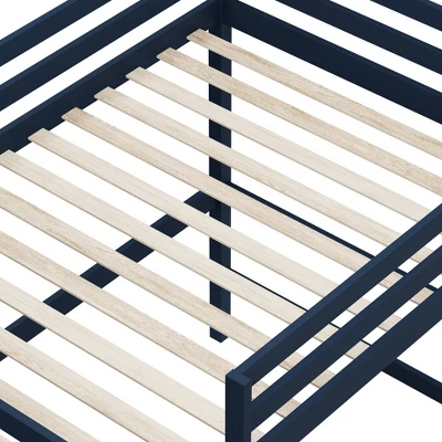 The Hillsdale Kids and Teen Caspian Full Study Loft is the perfect combination of simplicity and style. The simple slat style features a built-in desk under the full size bed, the perfect space for your child to work on homework or special projects. The ladder allows easy access for to the top bunk. Featuring a matte navy finish, this wood loft is the perfect addition to your kids room. Includes Full Size Study Loft. Requires Full Size Mattress; Not included. Assembly required.
