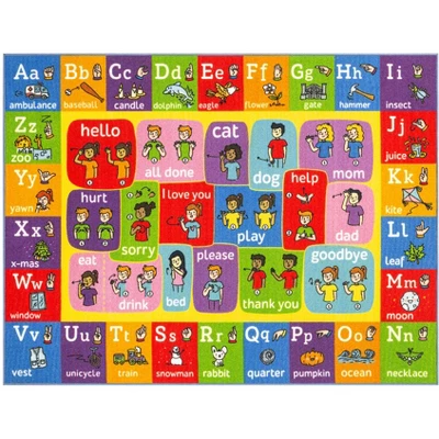 - Immersive Design: Fun And Educational Rug. Perfect To Teach Your Child Or Toddler The Alphabet In An Interactive Way During Adventure Time. Includes The Abcs And Letters And Phrases In American Sign Language.