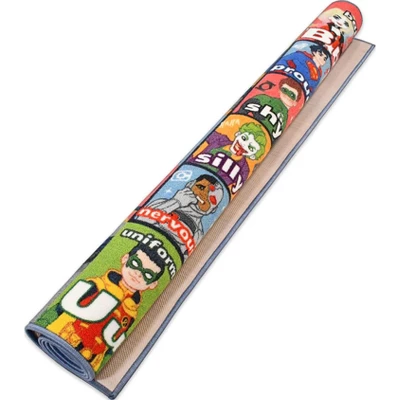 Officially LicensedKC Cubs joins with your favorite superhero and villians to immerse your kids with the ultimate learning experience. Make your child’s space a little more looney with this fun and playful rug featuring their favorite DC Comics characters. Your kids will love nothing more than to join Superman, Batman, Wonder Woman and their friends to learn about the ABCs and the traits & emotions that make them great. Designed to introduce many of the concepts young children are excited to learn about, create even more opportunities for learning through play with our educational rugs!Super Hero VibesHave your child feeling like a Super Hero everyday by repeating the affirmation of I Am A Hero Because I Am with any of our positive traits. This Justice League alphabet rug is the perfect blend of education and entertainment, featuring beloved DC Comics characters alongside important emotions and traits. Make learning fun and interactive with this colorful and educational Justice League alphabet rug, featuring a variety of emotions and traits to help your child develop important social skills.Make learning and playtime more fun with our adventure-filled educational kids rugs!KC Cubs Educational and Learning Game Rugs are carefully designed to stimulate your childās curiosity, giving them opportunities to learn while playing with all of their favorite toys making them the perfect addition to your child’s learning experience! Harness the power of learning through play!Our rugs will help your child simultaneously learn and grow their imagination. From sounds to colors to animals we have it all. So, whether you want to help your child identify numbers and learn to count or if youāre ready to take them on a tour of the universe, thereās a rug that will help you do just that. Designed with the help of early childhood educators and parents, you wonāt find rugs like this anywhere else. Not only are these rugs attractive and colorful, but they are also safe for use in schools and daycares as they meet the standard for surface flammability.Have fun while teaching your young ones!Whats better than unlocking you inner child and having an adventure with your favorite little ones. KC Cubs rugs promote interactive play and make-believe game play. Join parents around the country who are embracing the power of educational play with KC Cubs Rugs! Find the rug thatās right for you and your child and let the fun begin! They also are a great fit for any preschool, kindergarten, elementary school, daycare, or library with the 8 x 10 size. Add a splash of color and excitement to the children’s learning journey with KC Cubs educational rugs! Our Play + Social Skill Rugs also help kids form friendships by having them learn to share by taking turns in creating adventures and devoloping their communication skills by making them conversate with other kids.