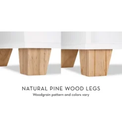 This sweet storage bench for kids is the perfect spot for reading, playing, and stowing away books and toys. Featuring two storage compartments on the left and two square cubbies below the bench seat, children can load this bench up with stuffed animals, building blocks, toys, books and more. The beige bench cushion adds a cozy place for children to sit while they read or play. With a clean, white painted finish and solid pine wood feet, this childrenās bench is the perfect solution for tidying up kidās playrooms in style. To conceal the clutter and add a pop of color to your space, add a two-pack of colorful folding storage bins. Includes detailed instructions and wall-anchoring hardware for easy assembly and installation. Give the playroom a completely new, organized look with the entire Kids Catch-All Collection.