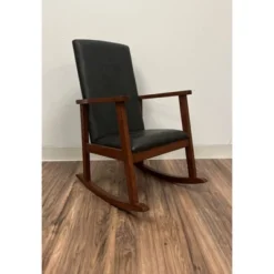 The Gift Mark Children’s Fully Upholstered Rocking Chair in Cherry colored Wood , and brown leather like upholstery. This chair will make a great statement no matter where it is placed. Children will race to be the first to sit in this children’s sized chair. This comfortable Rocking Chair, rocks smoothly, and is a wonderful choice to fill out your dĆ©cor. Made using Rubberwood, this sturdy chair arrives with tools needed for assembly.