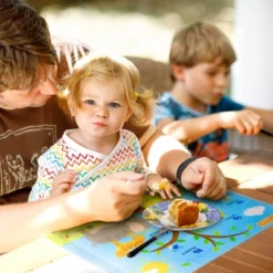 A little sheet of neat! Our Table TopperÂŽ is the original, stick-in-place disposable placemat. The Neat Solutions 60ct disposable table topperÂŽ acts as a barrier against bacteria and germs and is thoughtfully designed to provide a clean, sanitary eating surface for the little ones while dining out. 4 adhesive strips keep the mat securely in place. Engaging design helps teach children about numbers, counting and item recognition. Each generously sized mat measures 12″ x 18″. Disposable for easy clean-up and the convenient, re-sealable bag is great for travel. Perfect for babies and children 6 months and up. BPA and PVC free.