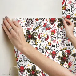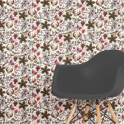 Stranger Things fan, have you ever wished you could join the Hellfire Club? Consider this your invitation! This Stranger Things Hellfire Club Peel and Stick wallpaper from RoomMates is certainly a great way to immerse yourself into your favorite show. Available in multiple colorways and with intricate design detail, youâll find something new every time you stare at this awesome pattern. True Stranger Things and DnD fans will be able to spot the showâs monsters and the gameâs base class characters. Exclusively licensed from Netflix, this peel and stick wallpaper is easy to install and remove! With high-quality vinyl and adhesive, RoomMates Decor peel and stick wallpaper removes in full panels and leaves no residue behind.
