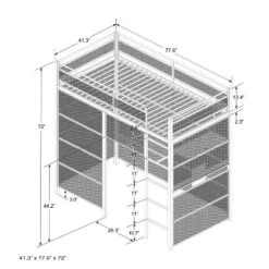 “The X Rocker Gaming Den Twin Bunk Bed is a versatile gaming bunk bed with a TV mount built into the enclosed den space, perfect for younger gamers. Featuring a high sleeper twin platform and a built-in TV mount that can hold up to a 32″” TV, this Den Bunk is ideal for gamers looking to integrate their gaming setup into their bedroom. Constructed with a strong and durable metal frame that provides stability, while the underneath den is the perfect fit for X Rocker pedestal gaming chairs, floor rockers, bean bags, and more. Dimensions: 77.6″(D) x 41.3″(W) x 72″(H)